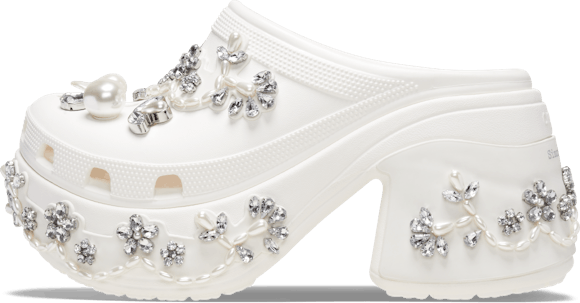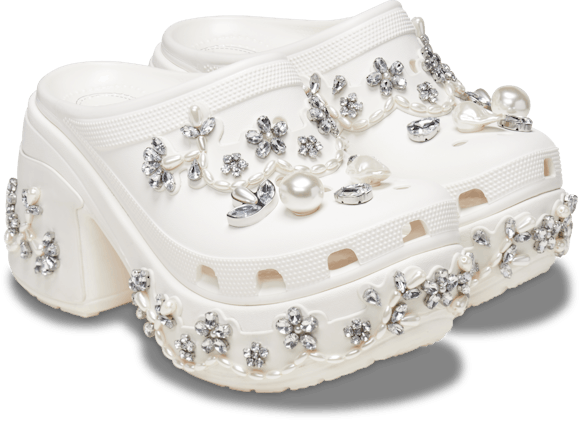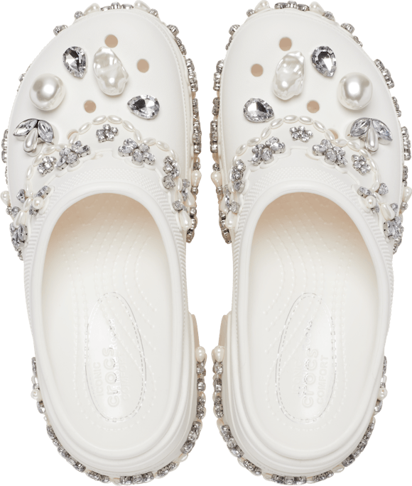 The Simone Rocha x Crocs Siren Clogs are an elevated statement piece for any collection, featuring pearl and gemstone ornamentation with exclusive Jibbitz™ charms. Designed with thoughtful attention to every detail, Simone Rocha has boldly left her mark on these limited-edition Siren clogs, an essential piece for any collector’s closet.