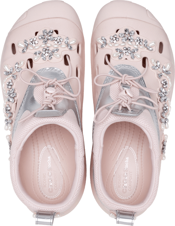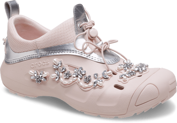 The Simone Rocha x Crocs Quick Trail Clogs are perfect for those who appreciate a blend of opulence and practicality. Each pair is adorned in jewels and made from high-quality, durable materials, ensuring both longevity and ease of wear. The cushioned footbed offers support in all the right places, making these clogs versatile for leisure and more active pursuits.